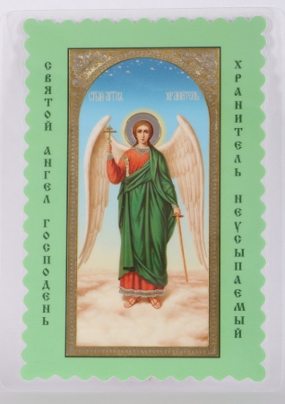 Икона в жесткой ламинации 8х11 с оборотом, двойное тиснение, высечка Ангел-Хранитель (ростовой) №2