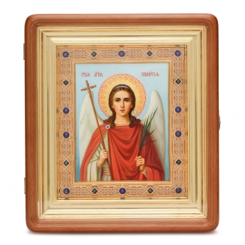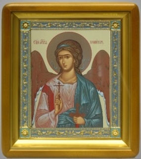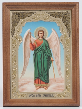 Икона в деревянной рамке 11х13 Набор с Днем Ангела, двойное тиснение Ангел-Хранитель (ростовой) №3