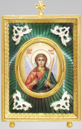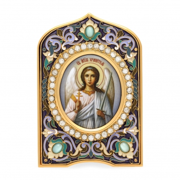 Икона настольная №26 серебро финифть, эмаль, гильяш Ангел-Хранитель (УИН)