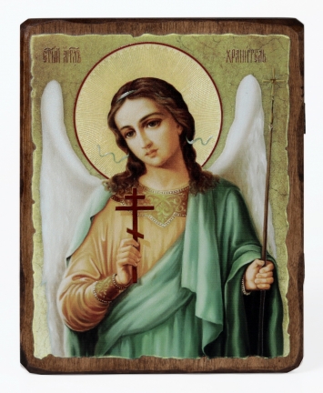 Икона на доске 30х40 объемная печать, лак №1 Ангел Хранитель,