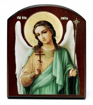 Икона на доске 10х12 объёмная печать, арочная, лак Ангел Хранитель 2