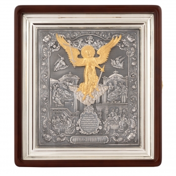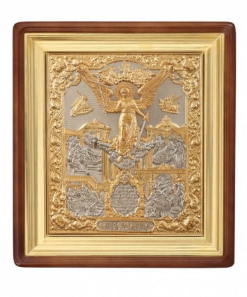 Икона настольная №146 гальванопластика, деколь в деревянной рамке / золочение, серебрение / Ангел Хранитель