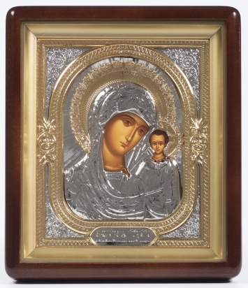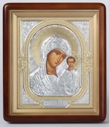 Икона в киоте 18х24 фигурный, темпера, риза объёмная №1 Казанская БМ