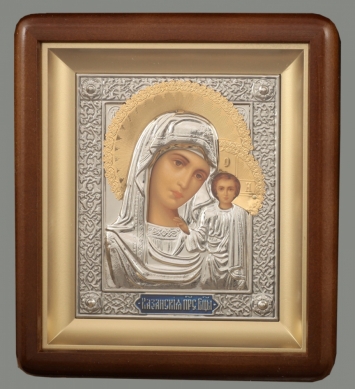 Икона на оргалите №1 11х13 двойное тиснение Казанская БМ 1