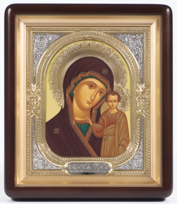 Икона живописная в киоте 24х30 темпера, риза №1, эмаль, киот №1 Казанская БМ