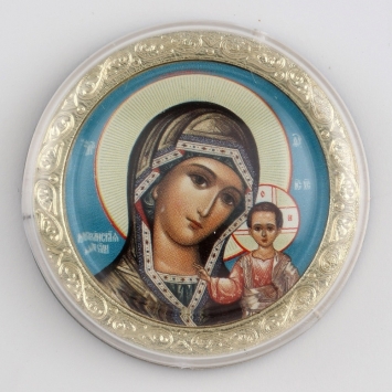 Икона в пластмассовой рамке 4х5 круглая №2 Казанская БМ