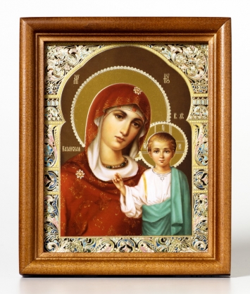 Икона в деревянной рамке №1 11х13 двойное тиснение Казанская БМ 38
