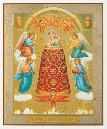 Икона на доске 13х15 объёмная печать, лак Богородица над монастырем