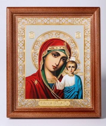Икона в деревянной рамке №1 11х13 двойное тиснение Казанская БМ 1