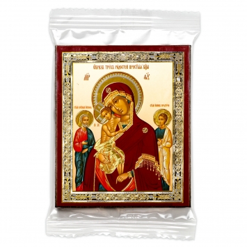 Икона на деревянном планшете 6х9 двойное тиснение, аннотация, упаковка Трех радостей БМ 2