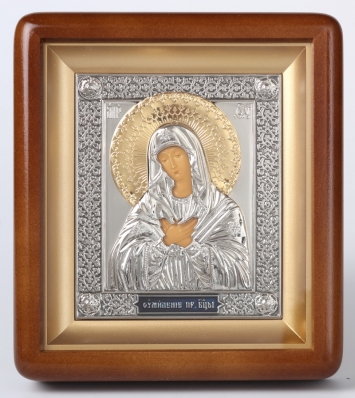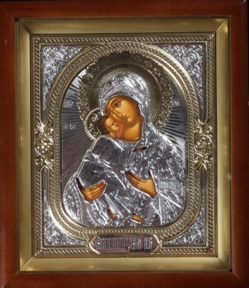 Икона в киоте 18х24 фигурный, темпера, риза объёмная №1 Владимирская БМ