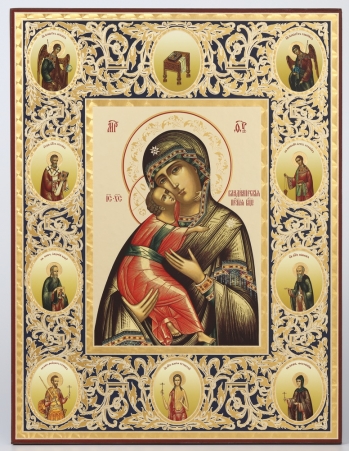 Икона на оргалите №1 30х40 двойное тиснение Владимирская БМ (с клеймами)