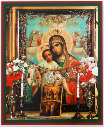 Икона на оргалите №1 11х13 тиснение Казанская Иерусалимская БМ