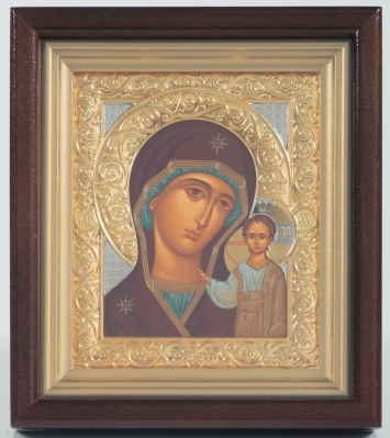 Икона в деревянной рамке №1 11х13 двойное тиснение Казанская БМ 31