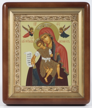 Икона в киоте 18х24 фигурный, темпера, рамка золочёная Достойно Есть
