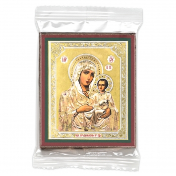 Икона на деревянном планшете 6х9 двойное тиснение, аннотация, упаковка Иерусалимская