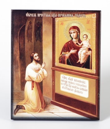 Икона на деревянном планшете 6х9 двойное тиснение, аннотация, упаковка Нечаянная Радость 3