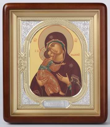 Икона в киоте 18х24 фигурный, темпера, риза-рамка №1 Владимирская БМ
