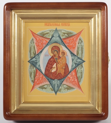 Икона живописная на доске в киоте 18х24 масло, золоченый нимб, киот №1 Неопалимая Купина