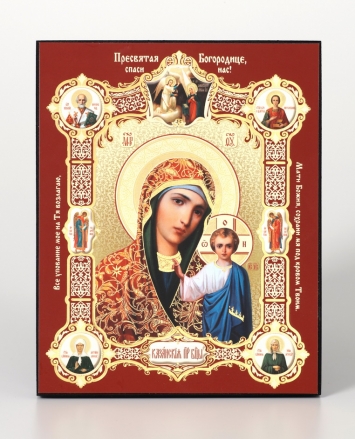 Икона на деревянном планшете 13х18 конгрев, плёнка (18мм) Казанская БМ (с клеймами)
