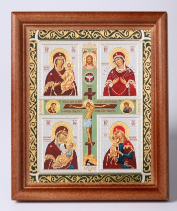 Икона в деревянной рамке №1 11х13 двойное тиснение Четырехчастная