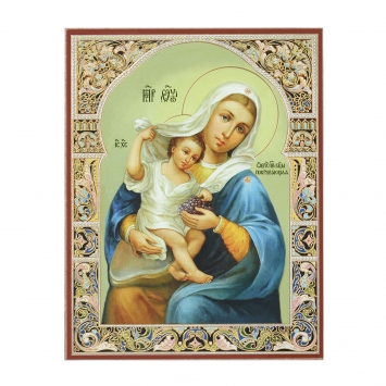 Икона в жесткой ламинации 5х8 с оборотом Млекопитательница БМ