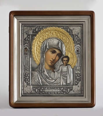 Икона живописная в киоте 24х30 масло, риза №88, черненое серебрение, киот №1 Казанская БМ