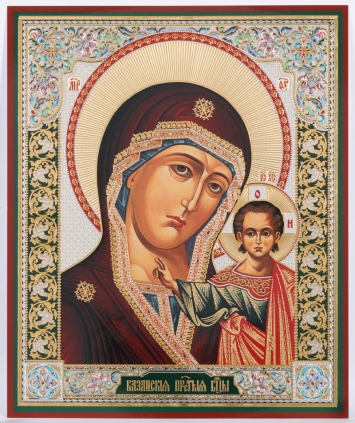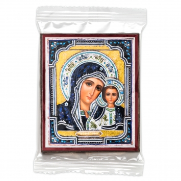 Икона на доске 22х26 объёмная печать, лак Казанская БМ иконописная №1