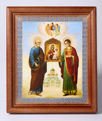Икона в киоте 18х24 фигурный, темпера, риза-рамка №1 Семистрельная БМ