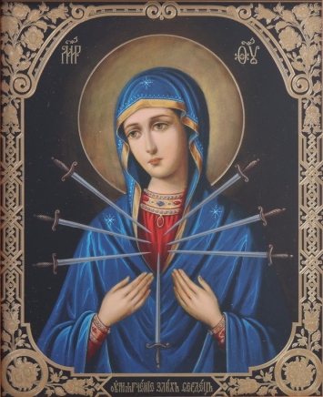 Икона в киоте 18х24 фигурный, темпера, риза-рамка №1 Семистрельная БМ