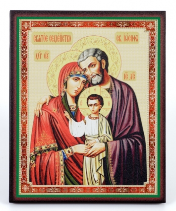 Икона на доске 13х15 объёмная печать, лак Святое семейство 2