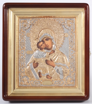 Икона живописная в киоте 22х26 масло, риза №250, киот №1 Владимирская БМ