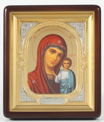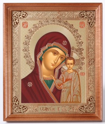 Икона в деревянной рамке №1 11х13 двойное тиснение Казанская БМ 30