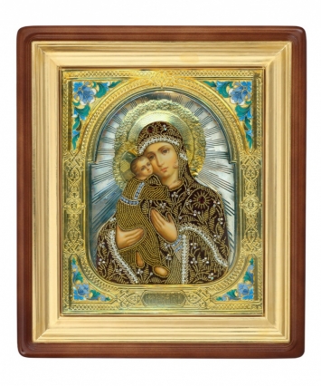 Икона живописная в киоте 24х30 масло, риза №102, жемчуг, эмаль, киот №1 Владимирская БМ