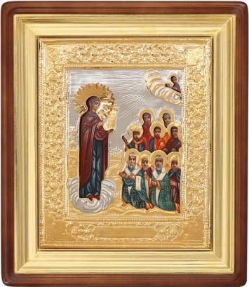 Икона живописная в киоте 24х30 масло, риза №206, черненое серебрение, киот №1 Феодоровская БМ