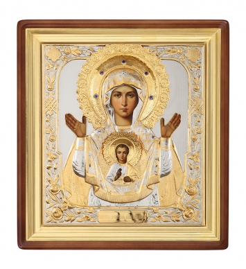 Икона живописная в киоте 50х60 масло, риза №279, камни, киот №1 Знамение