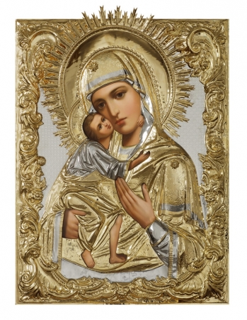 Икона на оргалите №1 18х24 двойное тиснение Владимирская БМ 01