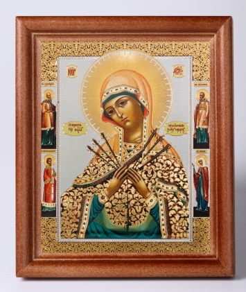 Икона в деревянной рамке №1 11х13 двойное тиснение Умягчение злых сердец (с предстоящими)