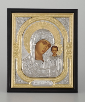 Икона в ризе 18х24 объемная, планшет, темпера, золочение, никель, упаковка Казанская БМ