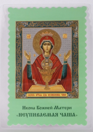 Икона в жесткой ламинации 8х11 с оборотом, двойное тиснение, высечка Неупиваемая Чаша 2