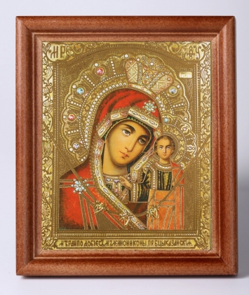 Икона в деревянной рамке №1 11х13 тиснение Казанская Иерусалимская БМ
