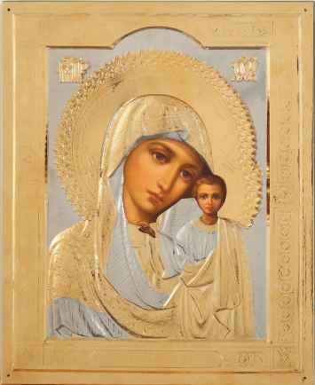 Икона живописная в киоте 24х30 масло, риза №88, киот №1 Казанская БМ
