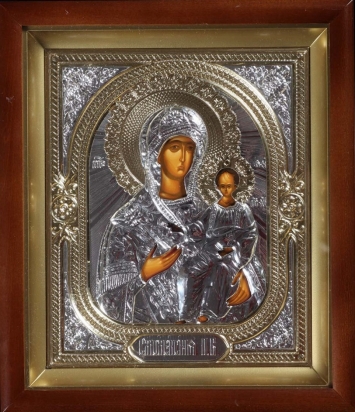 Икона штампованная 14*18 / темпера / золочение / серебро Владимирская БМ (УИН)