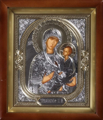 Икона в киоте 18х24 фигурный, темпера, риза комбинированая (зол.патин) Феодоровская БМ