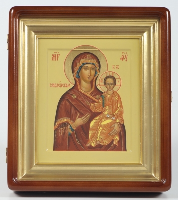Икона живописная на доске в киоте 18х24 масло, золоченый нимб, киот №1 Смоленская БМ