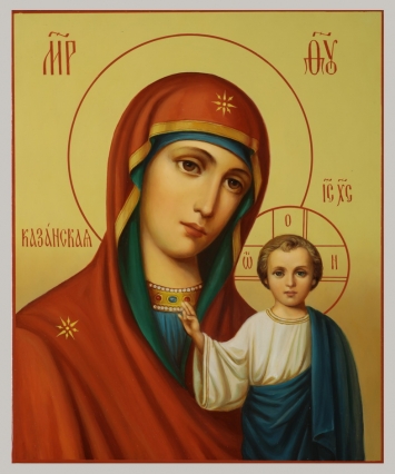 Икона в киоте 18х24 фигурный, темпера №1 Казанская БМ