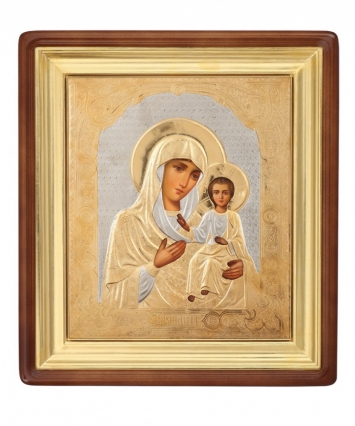 Икона живописная в киоте 30х40 масло, риза №204, черненое серебрение, киот №22 Смоленская БМ