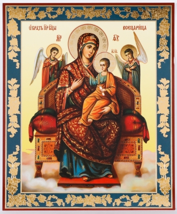 Икона на деревянном планшете 11х13 двойное тиснение Всецарица 2