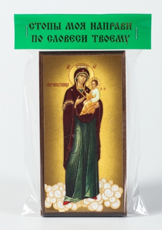 Икона на дереве 6х12 канвас, упаковка, ярлык Скоропослушница БМ