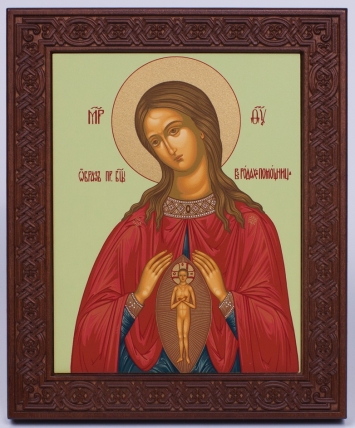 Икона на дереве 18х22 прокат, ковчег с резным обрамлением, упаковка Помощница в родах